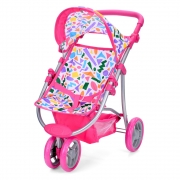 Коляска с регулируемой ручкой, двойным передним поворотным колесом, складывающимся капюшоном, корзиной для продуктов, 3-х точечным ремешком безопасности. Диаметр переднего колеса - 13,5 см. Диаметр задних колёс - 15 см. Высота ручки от 36 см. до 58 см. Глубина сиденья - 14 см. общие габариты : 50 - 33 см.